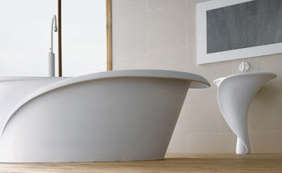 Topics this time, we will discuss the design of the bathroom have been built by architect Oriano Favaretto inspired by Pretty Calla Lily. Collection of this design gives the impression of a modern minimalist curves that highlight the artistic and captivating. Flower-shaped white color, offers a contemporary touch that has not been touched on current trends bathroom. Both stand-alone bath in it with a distinctive shape, beautiful but not conventional with its own artistry.
